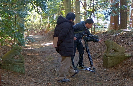 店主と狛犬談義をする=20点