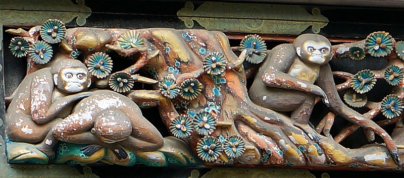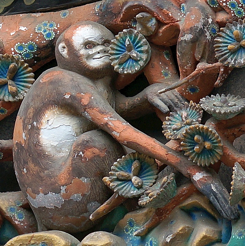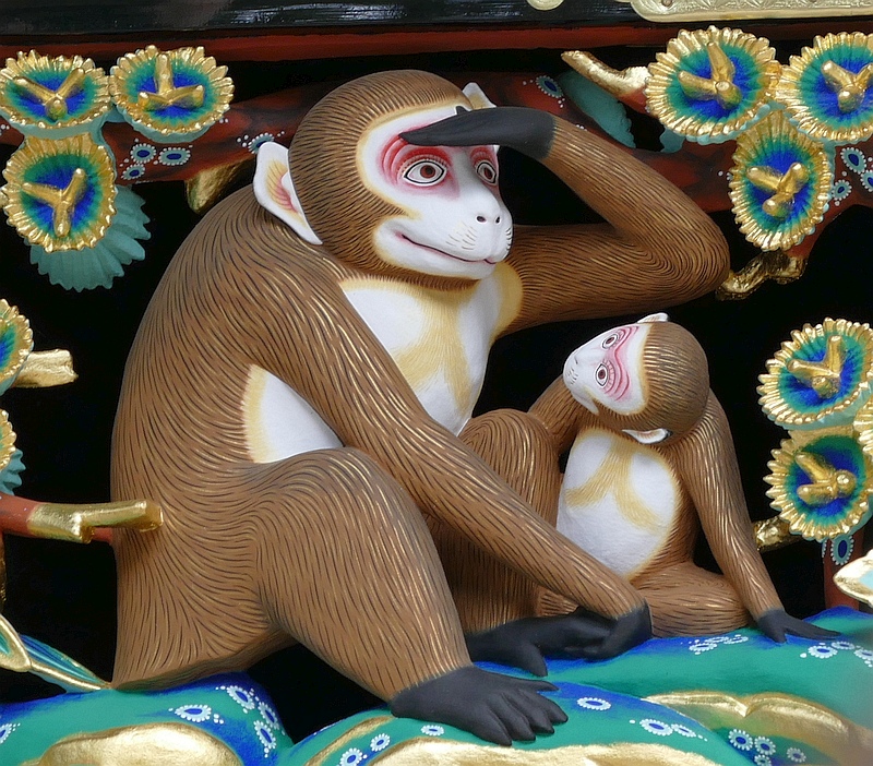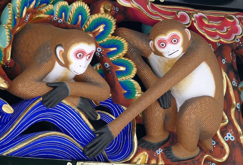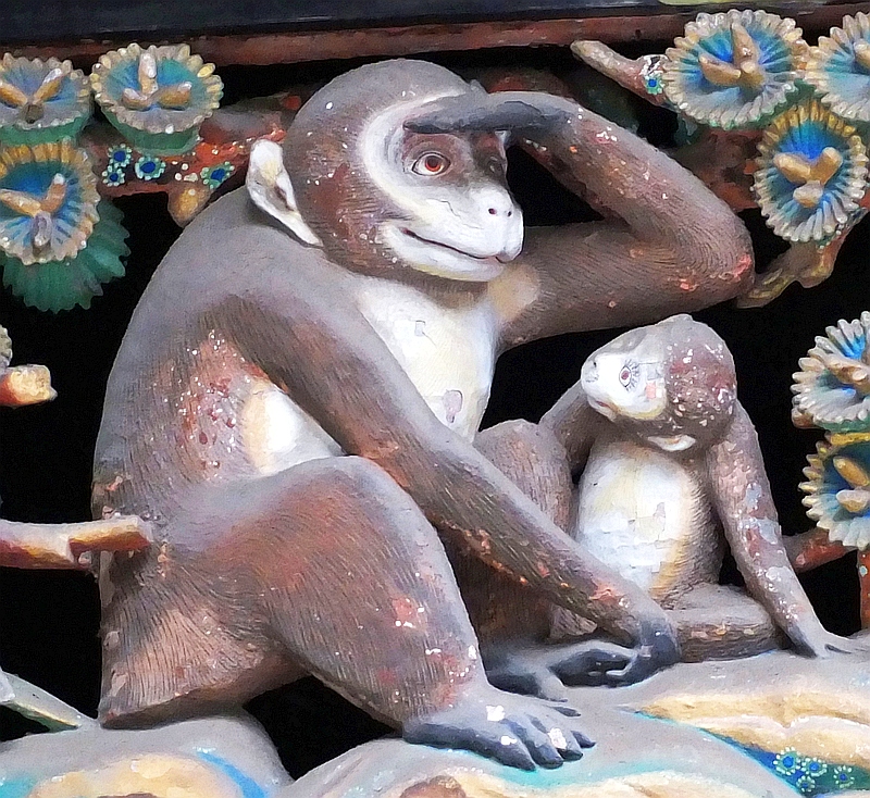 有名な三猿だけでなく、猿を使って人生を描いたというところを見ましょう。2017年、修復作業後の猿があまりにもひどいというので話題になりました。以前の姿と比較して見るという楽しみ方ができたかもしれませんね。