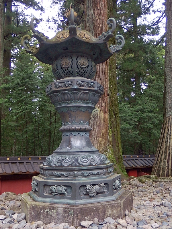 陽明門への石段を登る前に、いくつもの燈籠があります。境内にある燈籠は軽く100基を超えるそうで、中でも有名なのは、オランダの東インド会社から奉納された八角形の大きな回り燈籠、伊達政宗が奉納した南蛮鉄燈籠、島津家久が奉納した唐銅灯籠などです。